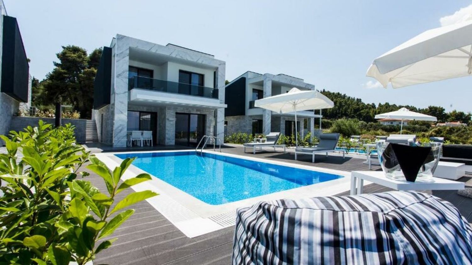 Crystal villas & suites» luxury resort is ideally situated one kilometer far from the center of Polichrono, on the endless sandy beach Kassandra, in the first peninsula of Halkidiki, with a south east orientation, offering a direct view at the Aegean Sea. Villas and suites are of the highest quality and have the added luxury of their own private swimming pools.