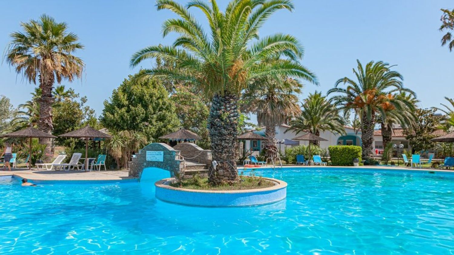 - Bars: pool bar: 10-18h, main bar Kassandra:18-01, beach bar Oasis:10-18