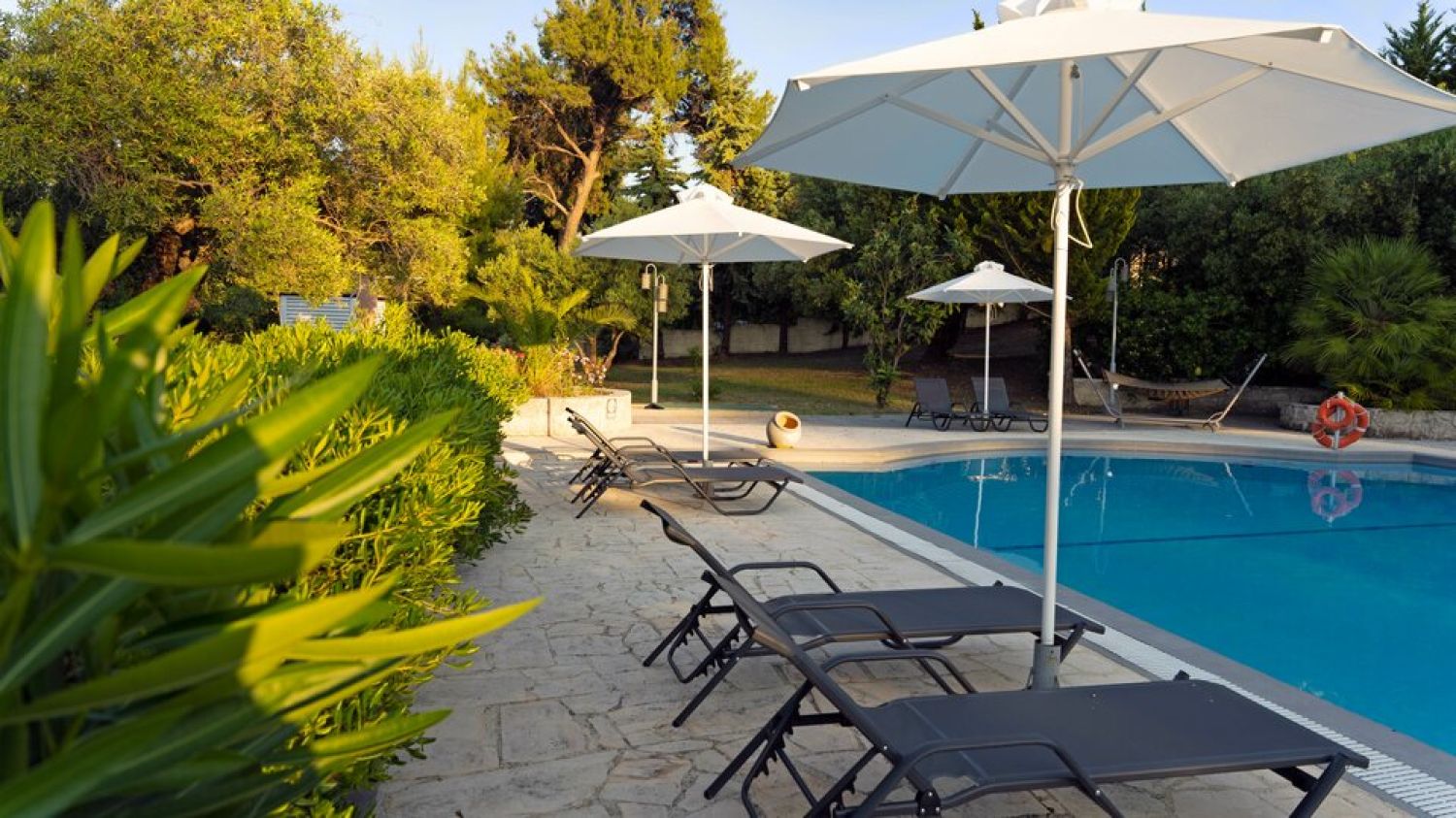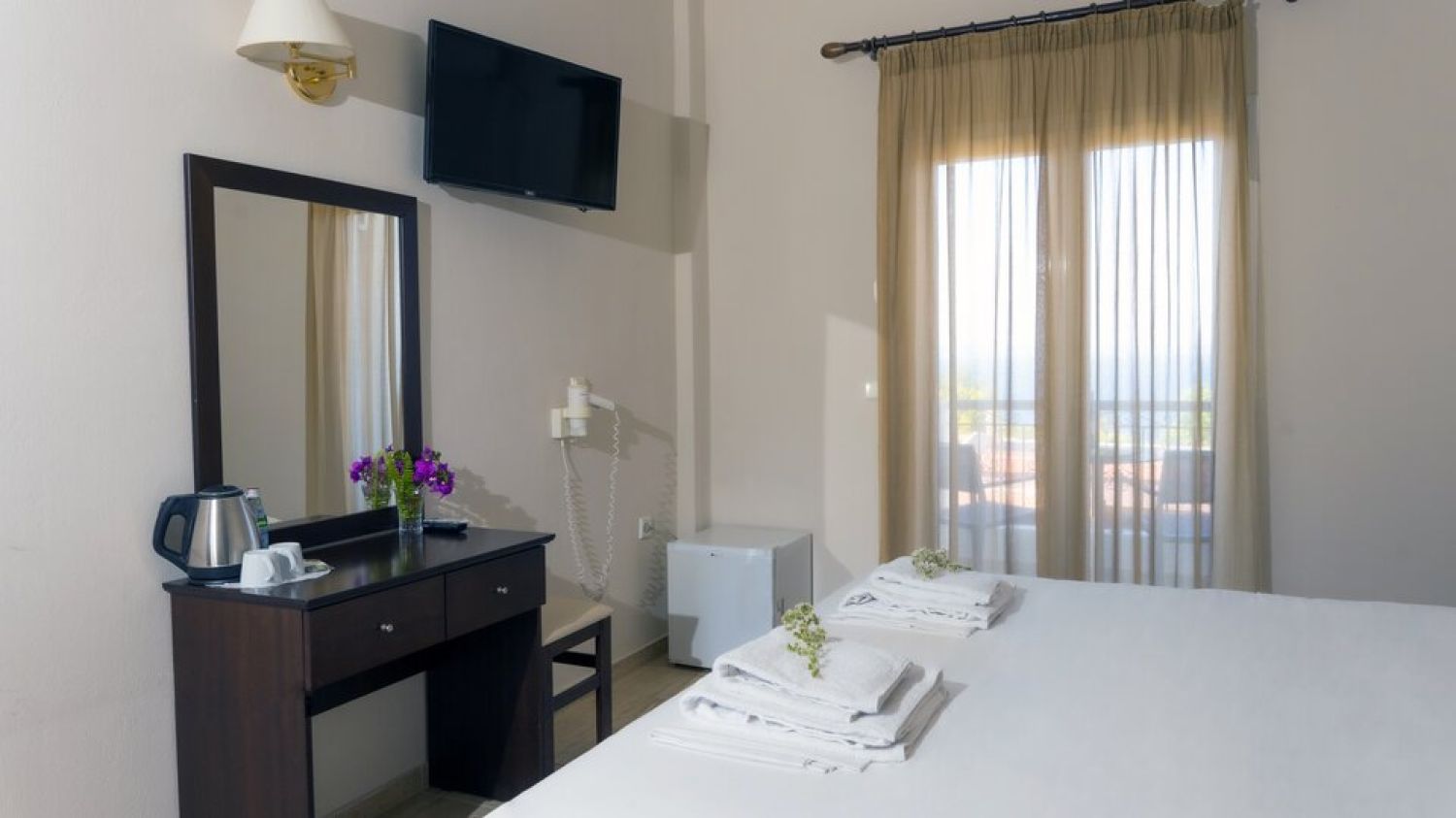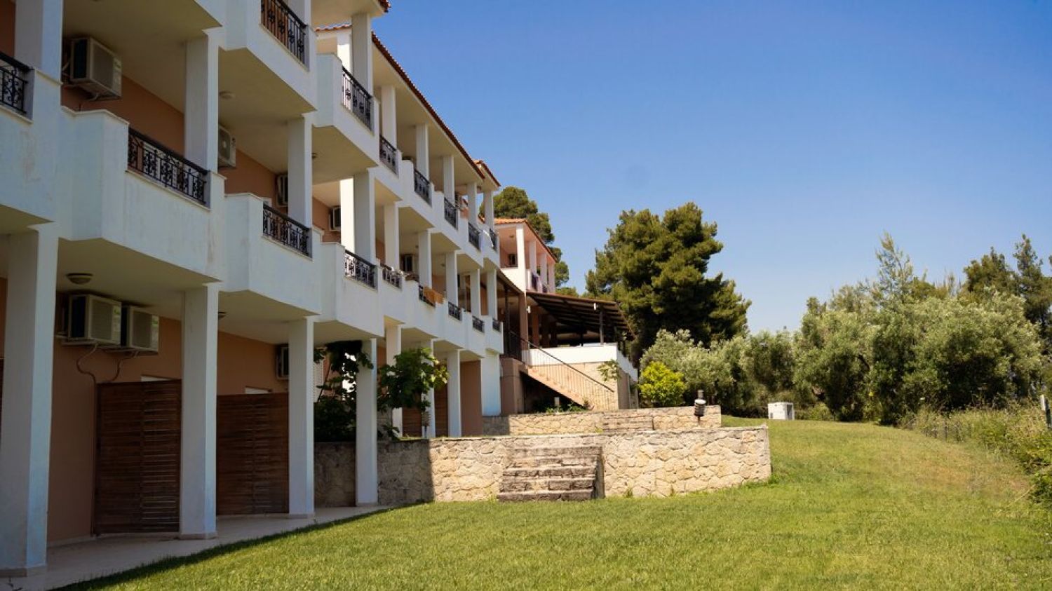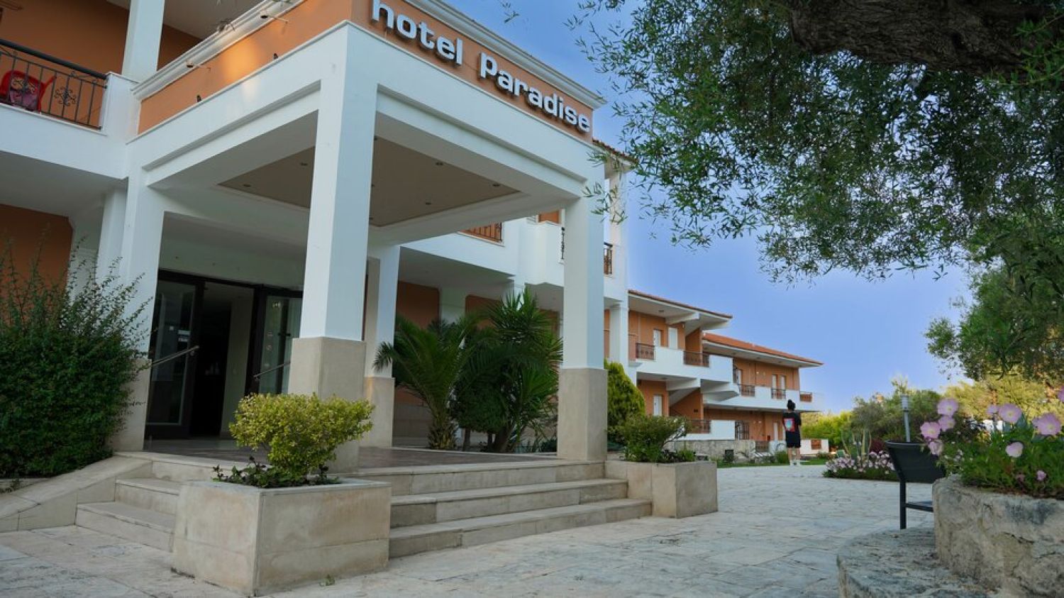 Located in the heart of Kassandra, hidden away in the forest of Kriopigi, about 800m from the center of the resort, Paradise hotel is an ideal choice for peaceful holidays in a quiet setting. The hotel complex features a well tended garden, an open air swimming pool with a pool bar for day-time and evening refreshments and snacks, children playground, ping-pong table, shaded a la carte restaurant, parking, reception, free Wi-Fi. Upper floor rooms overlook towards the sea, while the ground floor rooms have direct access to the garden, from their private veranda. One of the most beautiful beaches of Kassandra is accessible by wooded pathways through the forest. Thessaloniki airport is about 90km away, while the center of Kriopigi is at about 1.5km distance.
