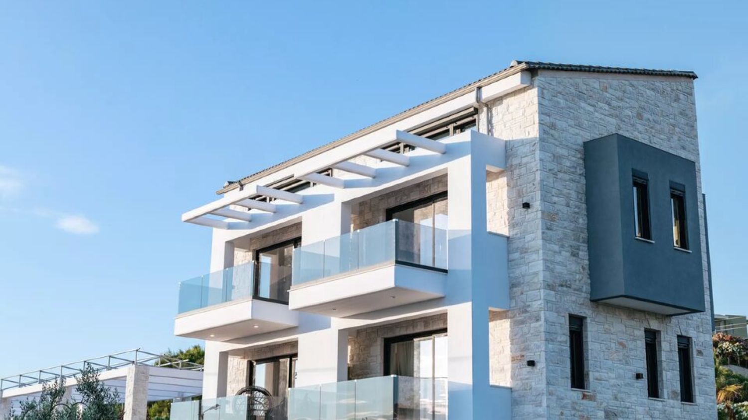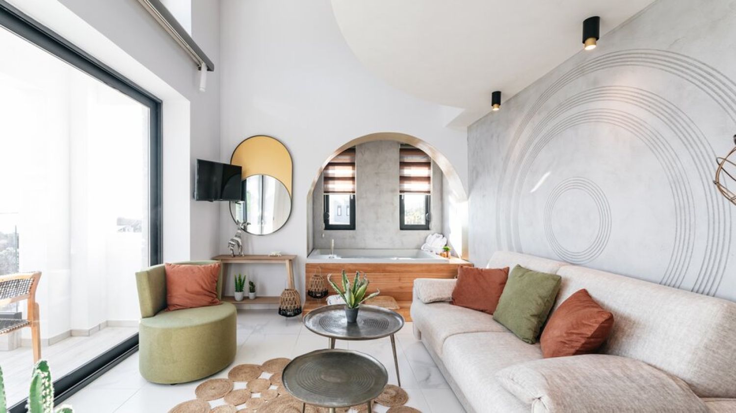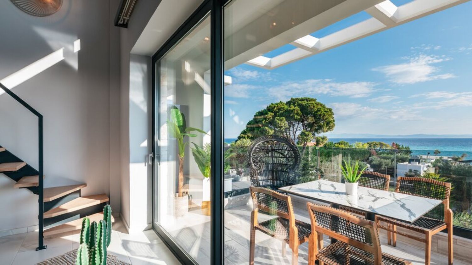 Unique furniture & floor to ceiling windows providing spectacular views across the Aegean and the beautifully landscaped gardens.