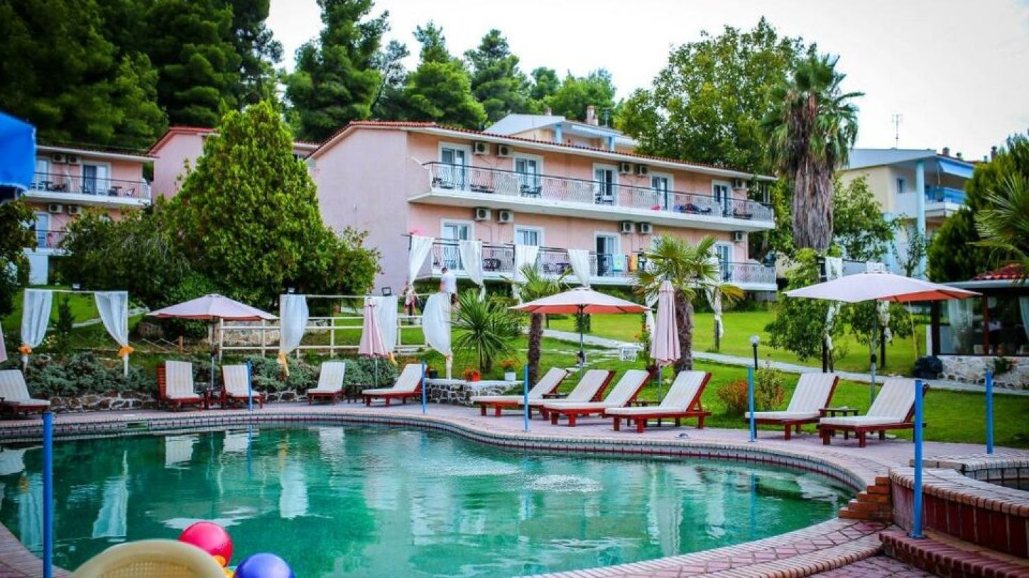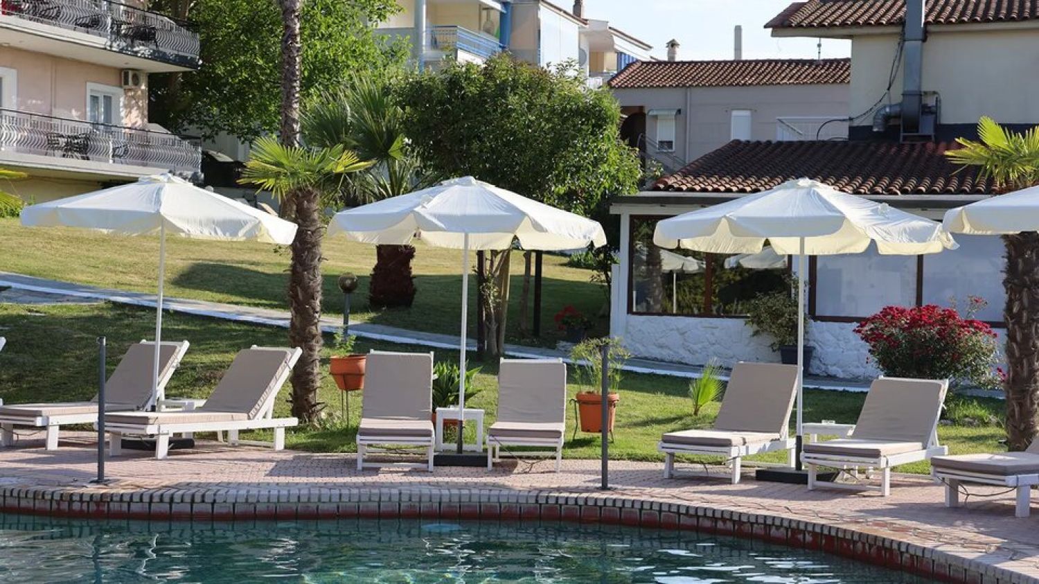 Jenny Hotel is located in the picturesque village Siviri on Kassandra peninsula of Chalkidiki. The view over the azure turquoise waters of the Aegean sea, the pine forests and mighty Olympus will make the guests wonder over the natural beauty. Well-groomed property, clean rooms, the long sandy beach within the walking distance, attentive staff, the variety of excursions available at the reception and much more will make your holiday nice and comfortable. The hotel consists of 4 residential buildings offering 36 rooms overlooking the well-trimmed green lawns, a restaurant serving traditional Mediterranean breakfast and dinner on Half Board basis and a bar at the swimming pool area with umbrellas and sunbeds. The Siviri's center is at 200m distance, while the Thessaloniki airport is 81km away.