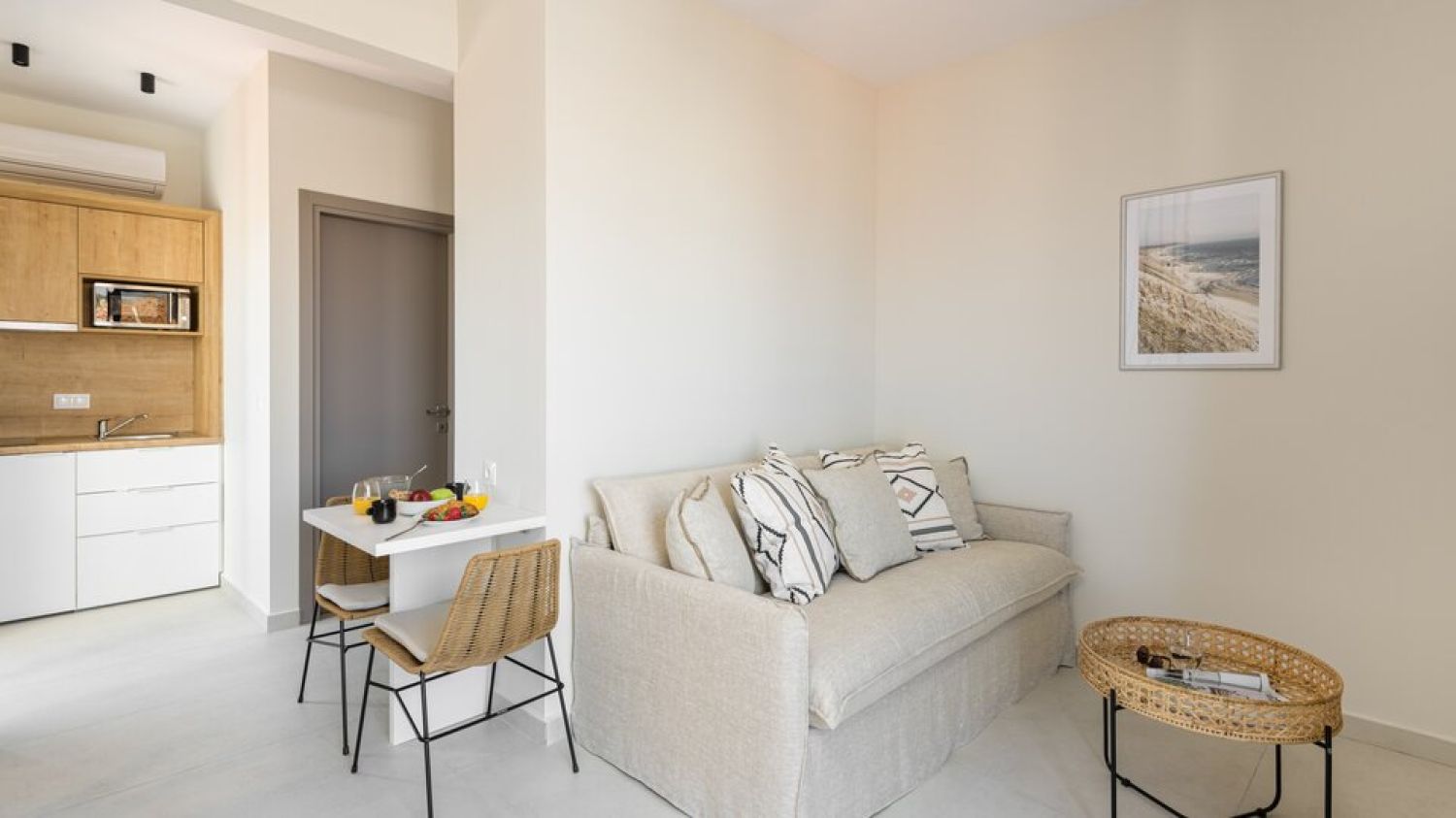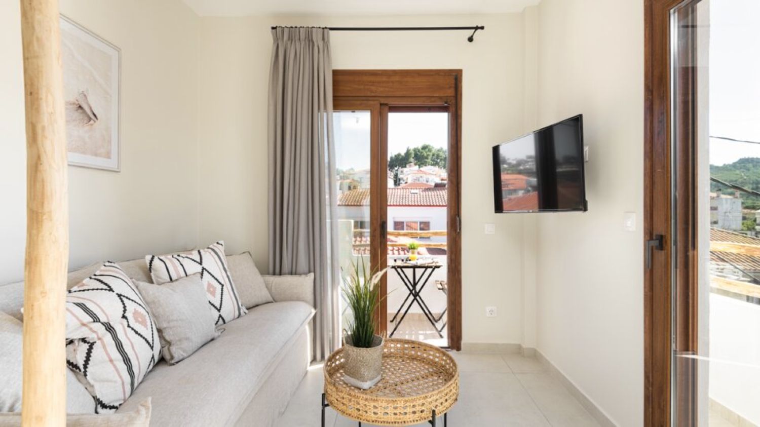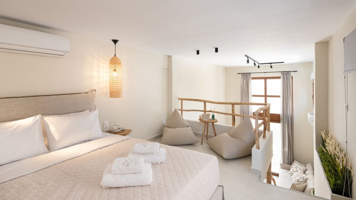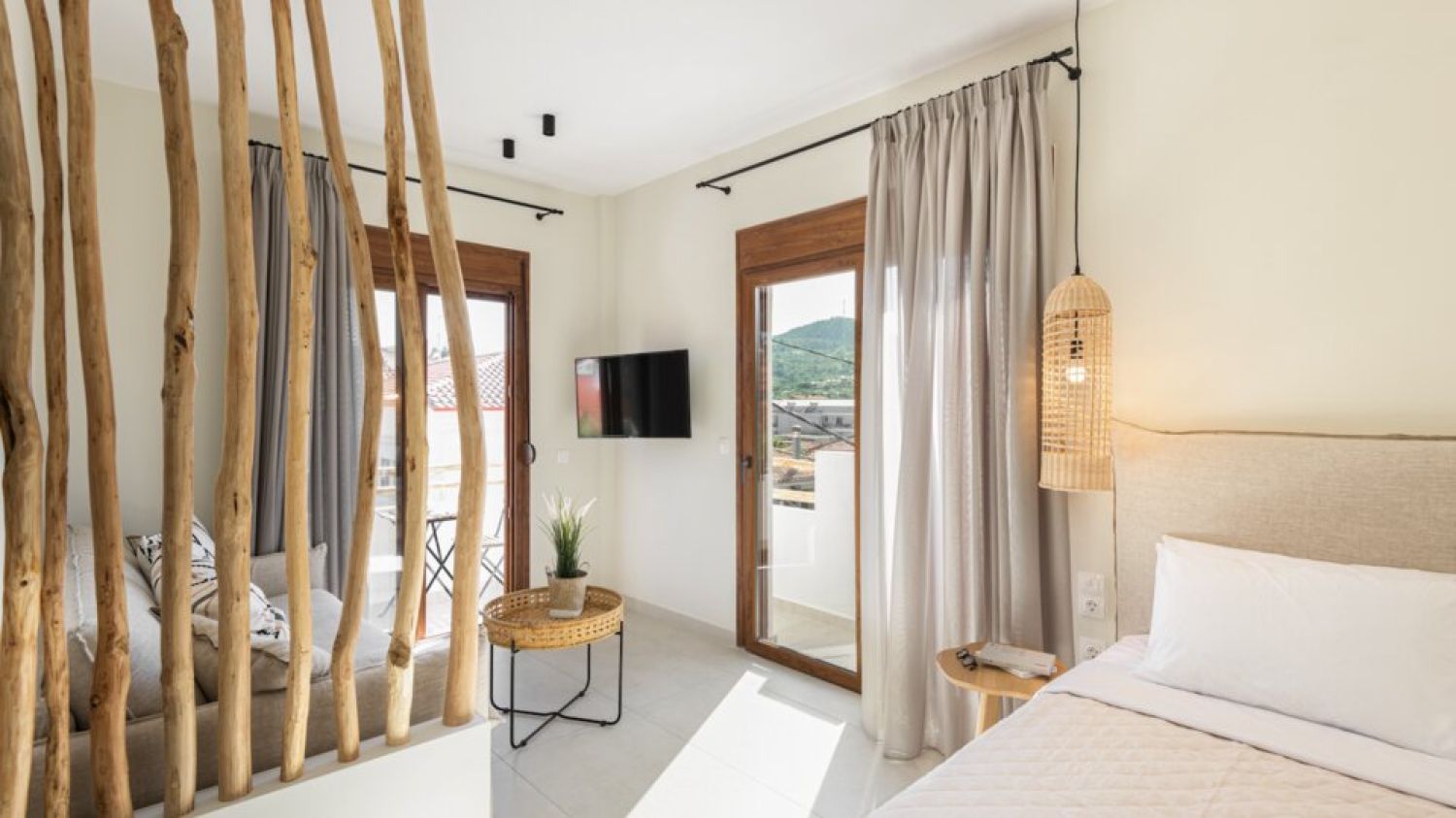 Indulge in sophisticated comfort at Boho Suites, a collection of premium suites ideally situated in the heart of old town of Pefkohori, Halkidiki. This haven caters to the discerning traveler seeking a blend of modern luxury and traditional Greek charm. Palm Suites blends the warmth of a traditional building with a complete modern refurbishment. Choose from 11 beautifully appointed suites, each boasting a private balcony or terrace and a convenient fully equipped kitchenette, featuring a modern ambiance with touches of bohemian flair. Step outside your suite and discover the vibrant village of Pefkohori at your doorstep.  Wander along the charming beach promenade lined with shops, cafes, bars, and delectable restaurants.  Immerse yourself in the lively atmosphere, which caters to all tastes, with local music venues, a luna park, and numerous beach bars. Explore the nearby Glarokavos beach, a stunning natural lagoon, perfect for swimming and sunbathing. Pefkohori's strategic location makes it an ideal base for exploring the greater Halkidiki region. Immerse yourself in the rich history and culture of the area, or venture further afield to discover Thessaloniki, Greece's vibrant second-largest city, located approximately one hour away.