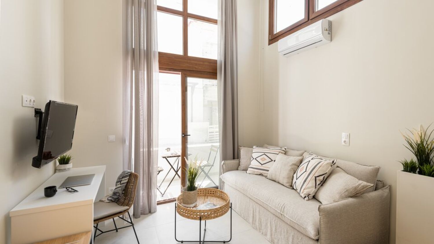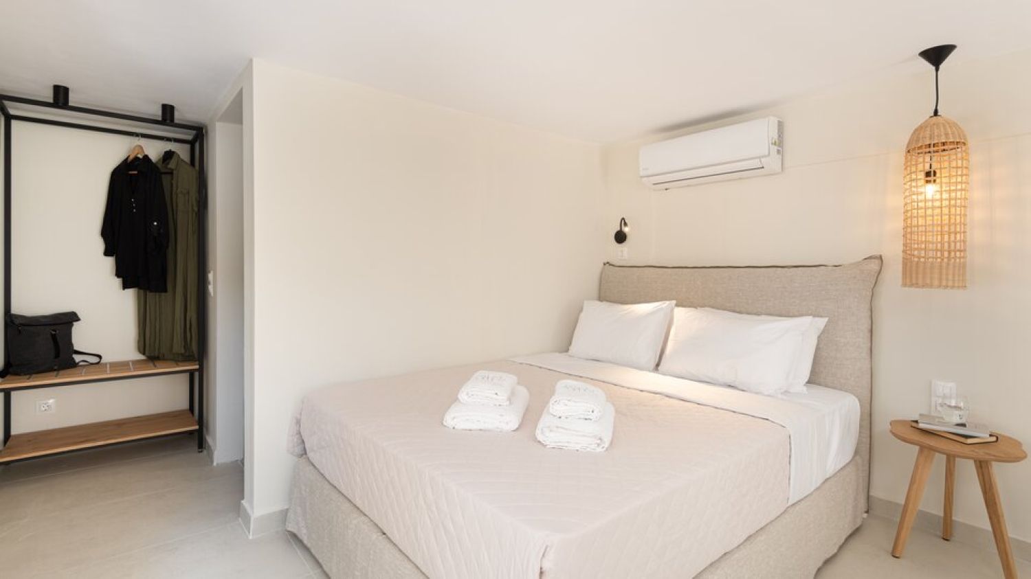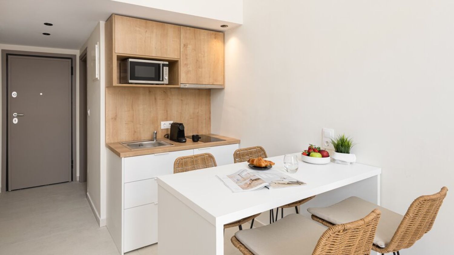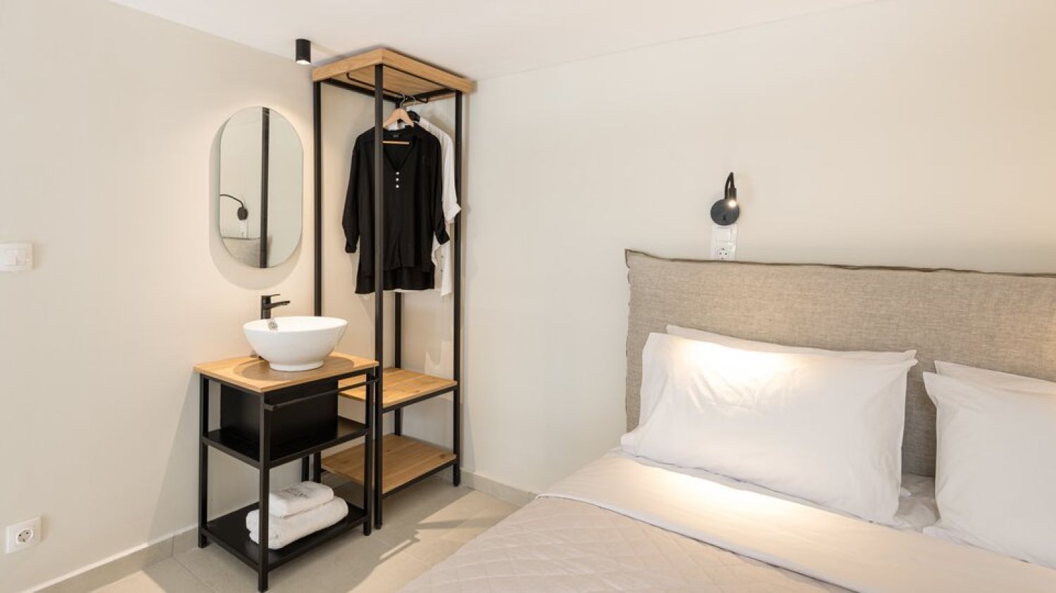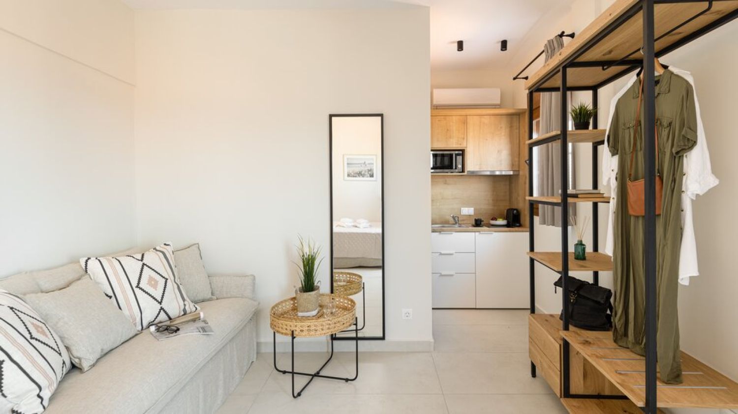 Indulge in sophisticated comfort at Boho Suites, a collection of premium suites ideally situated in the heart of old town of Pefkohori, Halkidiki. This haven caters to the discerning traveler seeking a blend of modern luxury and traditional Greek charm. Palm Suites blends the warmth of a traditional building with a complete modern refurbishment. Choose from 11 beautifully appointed suites, each boasting a private balcony or terrace and a convenient fully equipped kitchenette, featuring a modern ambiance with touches of bohemian flair. Step outside your suite and discover the vibrant village of Pefkohori at your doorstep.  Wander along the charming beach promenade lined with shops, cafes, bars, and delectable restaurants.  Immerse yourself in the lively atmosphere, which caters to all tastes, with local music venues, a luna park, and numerous beach bars. Explore the nearby Glarokavos beach, a stunning natural lagoon, perfect for swimming and sunbathing. Pefkohori's strategic location makes it an ideal base for exploring the greater Halkidiki region. Immerse yourself in the rich history and culture of the area, or venture further afield to discover Thessaloniki, Greece's vibrant second-largest city, located approximately one hour away.
