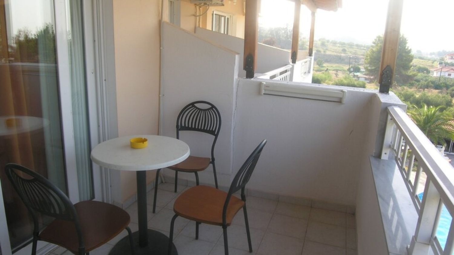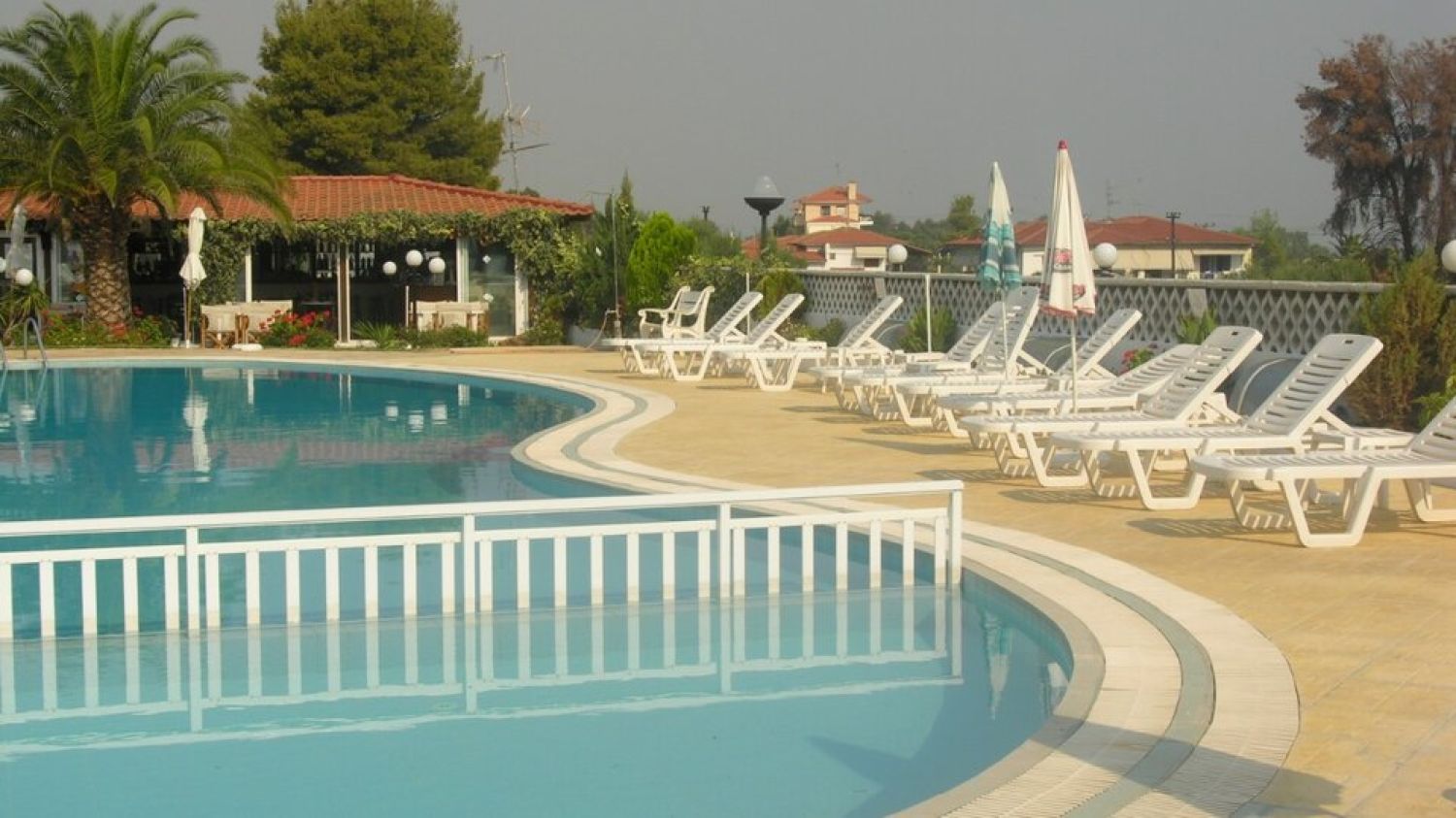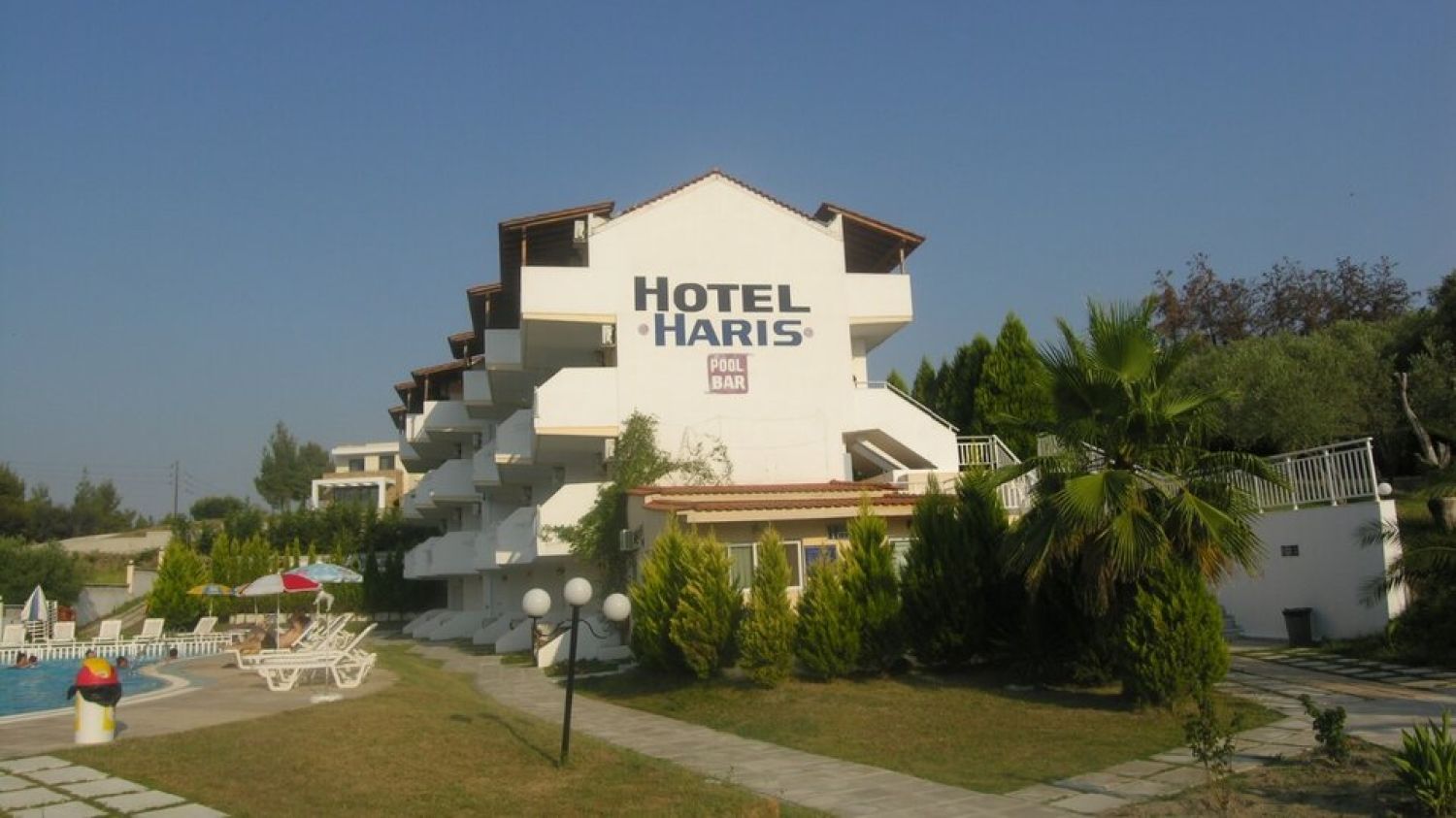 Perched atop the most beautiful part of Halkidiki, just 500m from the center of Hanioti and 450m from the beach, Haris offers a tranquil retreat. With warm hospitality, a relaxing pool, and a snack bar, it’s the perfect spot for an unforgettable summer vacation. Surrounded by greenery and beautiful gardens, you'll feel right at home in this family-run hotel. Stunning views roll out from each of the furnished balconies, leading to the cozy rooms, fully equipped to cater for all your cares. Main road will take you to the center of Hanioti, or further south, to the famous Kassandra beaches, like Pefkohori, Glarokavos or Xenia. Thessaloniki airport is at 90km distance.