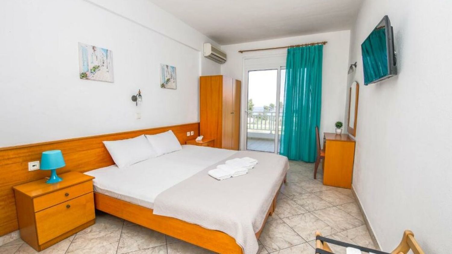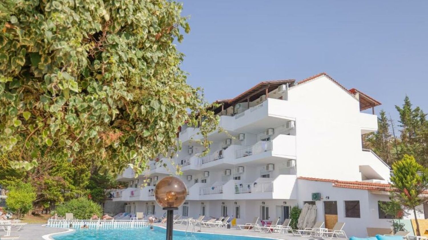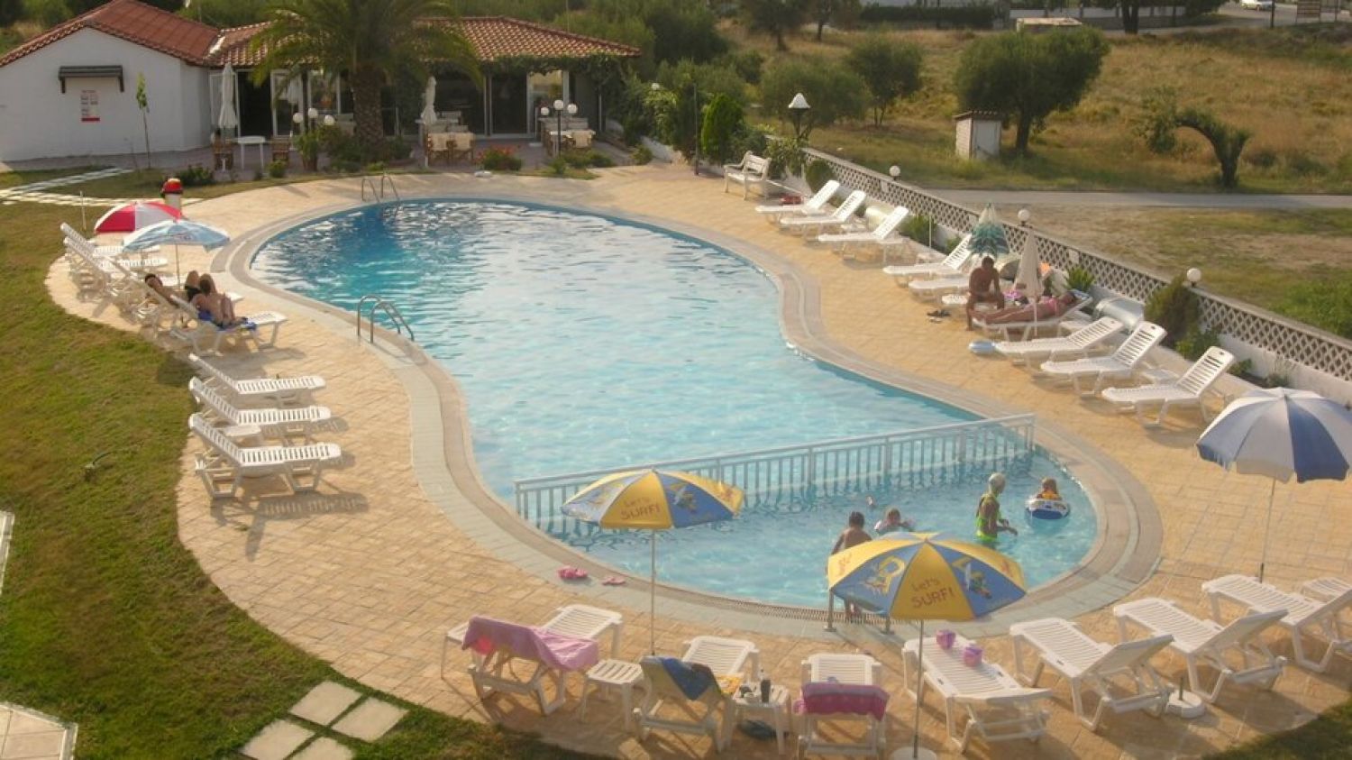 Perched atop the most beautiful part of Halkidiki, just 500m from the center of Hanioti and 450m from the beach, Haris offers a tranquil retreat. With warm hospitality, a relaxing pool, and a snack bar, it’s the perfect spot for an unforgettable summer vacation. Surrounded by greenery and beautiful gardens, you'll feel right at home in this family-run hotel. Stunning views roll out from each of the furnished balconies, leading to the cozy rooms, fully equipped to cater for all your cares. Main road will take you to the center of Hanioti, or further south, to the famous Kassandra beaches, like Pefkohori, Glarokavos or Xenia. Thessaloniki airport is at 90km distance.