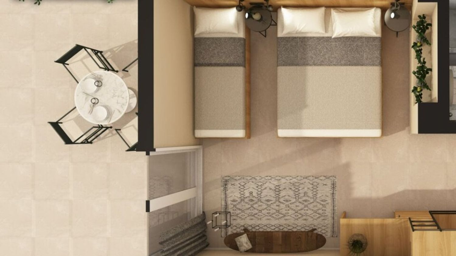 - Outdoor common area: small courtyard with common barbecue and outdoor showers